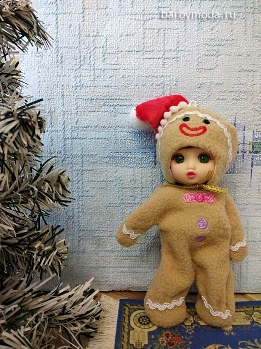 Печенька - баболичка в костюме пряничного человечка на стандартном шарнирном теле.
