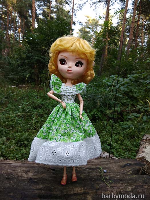 Для нее сшито платье сшито из двух хлопчатобумажных тканей-компаньонов с мелким рисунком.
