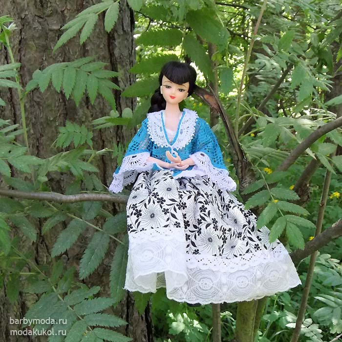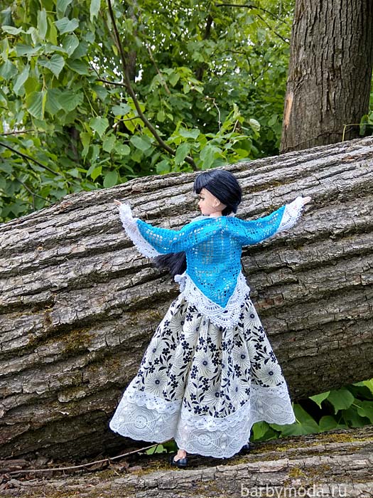 Юбка пышная, отделана капроновым кружевом. Застегивается сзади на крючки.