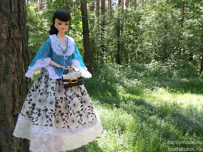 К родному топику сшита юбка из хлопчатобумажной ткани с мелким рисунком.