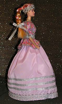 Юбка сшита двойная, верхняя из нежного натурального шелка, по низу расшита серебряной тесьмой и 3 рядами серебряной узкой ленты.