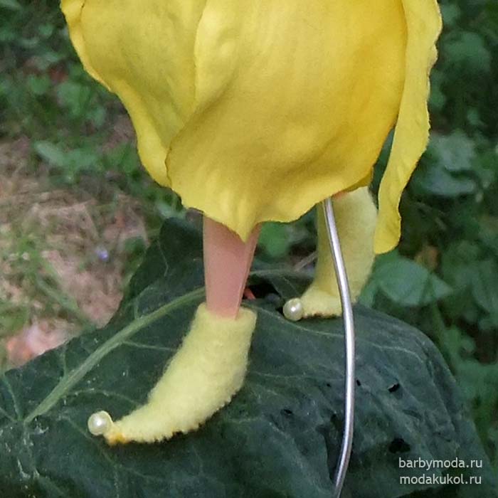 Башмачки сшиты из флиса, украшены жемчужной бусинкой.