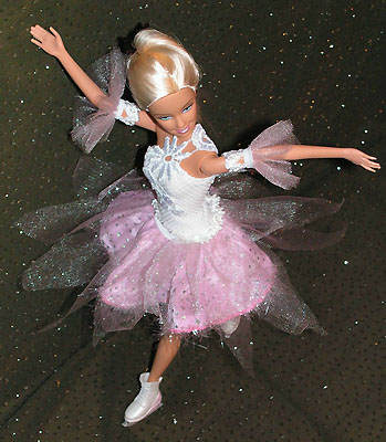 Два костюма для фигурного катания на одной основе - белом трикотажном купальнике, отделанном кружевными цветами.
