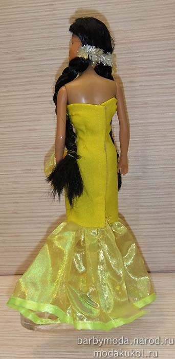 Для нее сшито платье из желтого крепа с широкой юбкой-воланом из органзы.