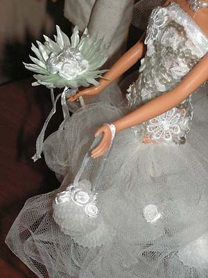 Верхняя юбка-шлейф сшита из 4 слоев сосборенного фатина, скрепленных атласными и гофрированными розами.