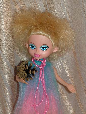 Лиссава живет в сказочном лесу. У нее платье из разноцветного длинного меха с воротником из бархатной ленты. Застегивается на кнопочки сзади. Украшением служат бусы на платье и на прическе.