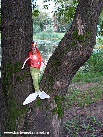 А тут мне нужно было сшить хвосты для русалочек. Пробовала разные ткани и с одним хвостом вышла промашка - никак не хотела золотая сетка убираться в шов. в результате хвост получился слишком узким в основании и редкие ножки смогли бы в него втиснуться. Совсем было уж собралась я его выбросить, но возникла у меня идея сделать настоящую русалку с настоящим хвостом.