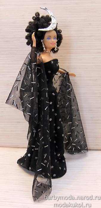 Фатиновый длинный шарф с серебряным "дождем"серебряные месяц в волосах,серьги и ожерелье довершают облик.