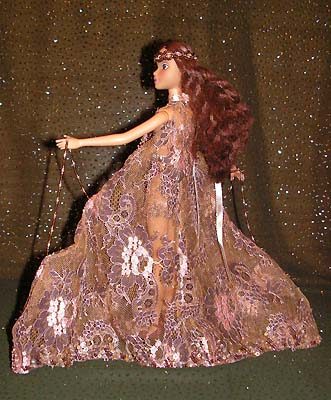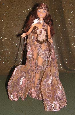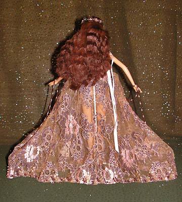 Для Роми сшито длинное платье из цветного кружева-гипюра, на горле завязывается атласной лентой нежного персикового цвета.