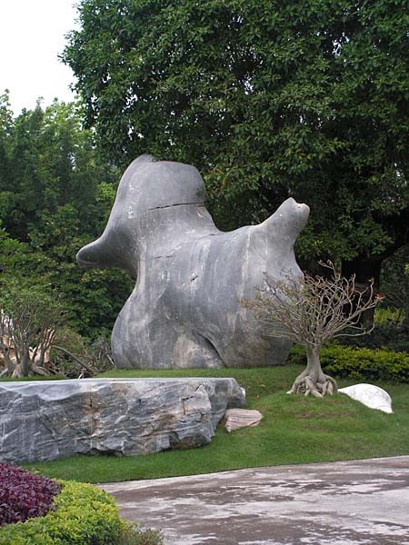 Это китайская собачка в Королевском дворце. У неё в пасти шарик, надо его покрутить в разные стороны, это приносит удачу.
