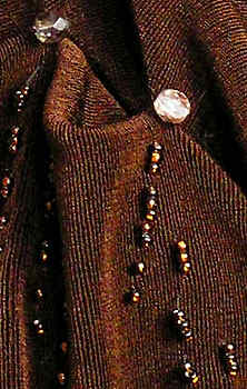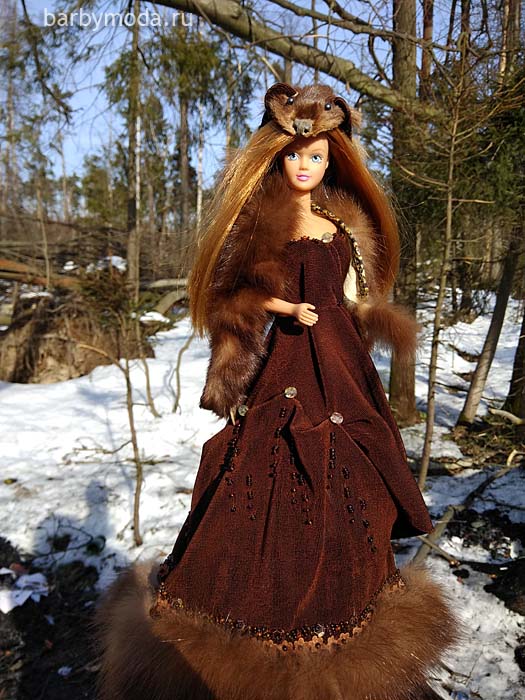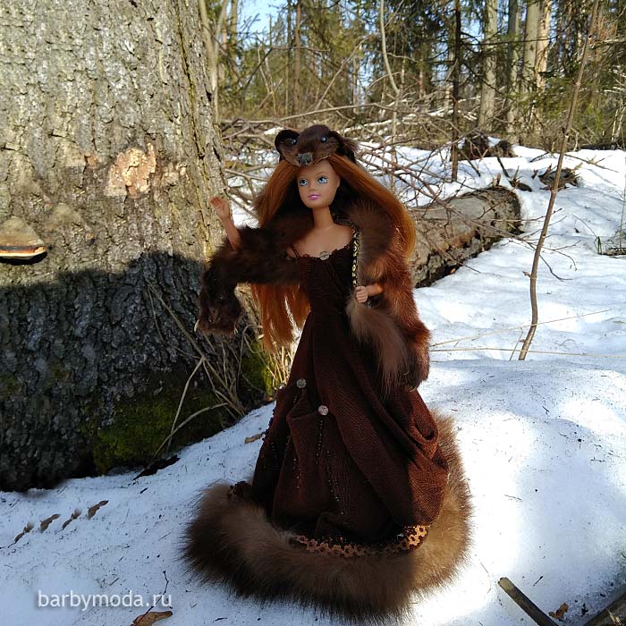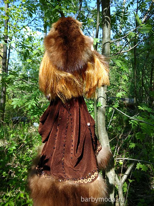 Сверху надета меховая соболиная курточка , заканчивающаяся лапками с когтями и отделана тесьмой.