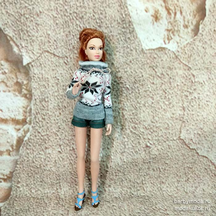 Для нее сшит "носочковый" свитерок. Шорты от другой топ модели.